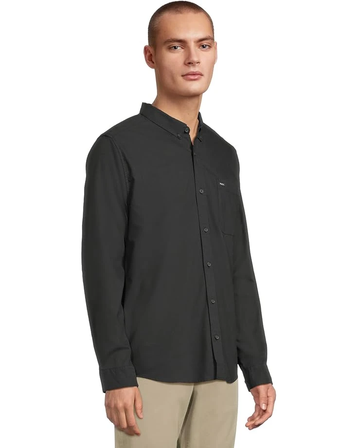 - Refined style meets every day versatility – RVCA® That’ll Do Stretch L/S. Enhance your wardrobe with this classic slim-fit shirt, designed for effortless style and comfort. Featuring a sharp collared neck and button-front closure, it transitions seamlessly from office hours to after-hours. Long sleeves with buttoned cuffs lend a polished touch, while the single chest pocket with RVCA’s signature solo label at the hem adds understated branding. Crafted with a scalloped hem for a modern twist, this shirt offers a tailored look that doesn’t compromise on ease of movement.