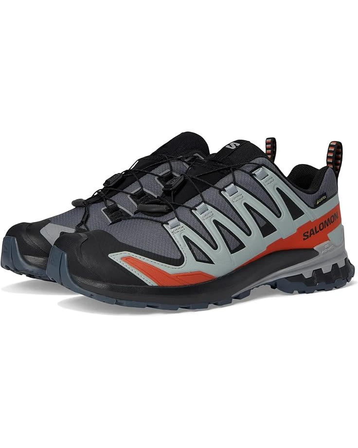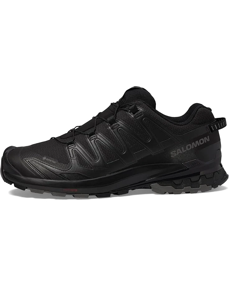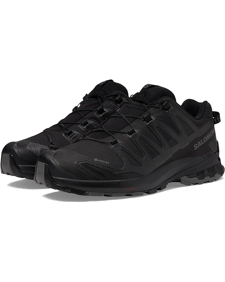 - Super tough and grippy, the Salomon® XA Pro 3D V9 GORE-TEX® accompany you from medium to high terrain toughness. Round-toe shoes have bungee with hidden closure. Back pull-on tabs ensure you can quickly put on and off. Shoes are crafted from textile and synthetic upper, textile lining, and insole.