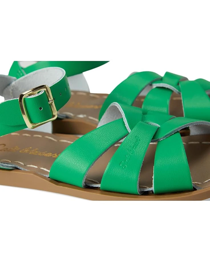 - Ensure happy little feet with every adventure with the Salt Water® Sandal by Hoy Shoes Salt Water Original Sandals. Crafted from leather upper, lining, and insole, this pair of sandals features open round toe, hand assembled, and stitched straps detailing, ankle strap with rust-proof buckle closure, and brand detailing on the footbed.