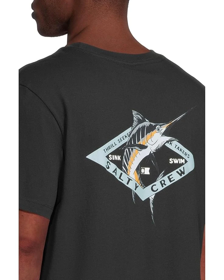 - Style your great look wearing the Salty Crew® Diamond Marlin Short Sleeve Tee. This short sleeved t-shirt is a 30 singles combed ring spun with screen printed front and back. Featuring crew neckline, regular fit, cool graphic print on the back, brand logo on the front left chest, and straight hem.