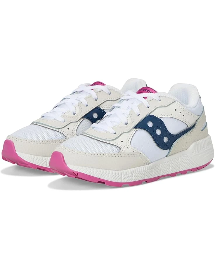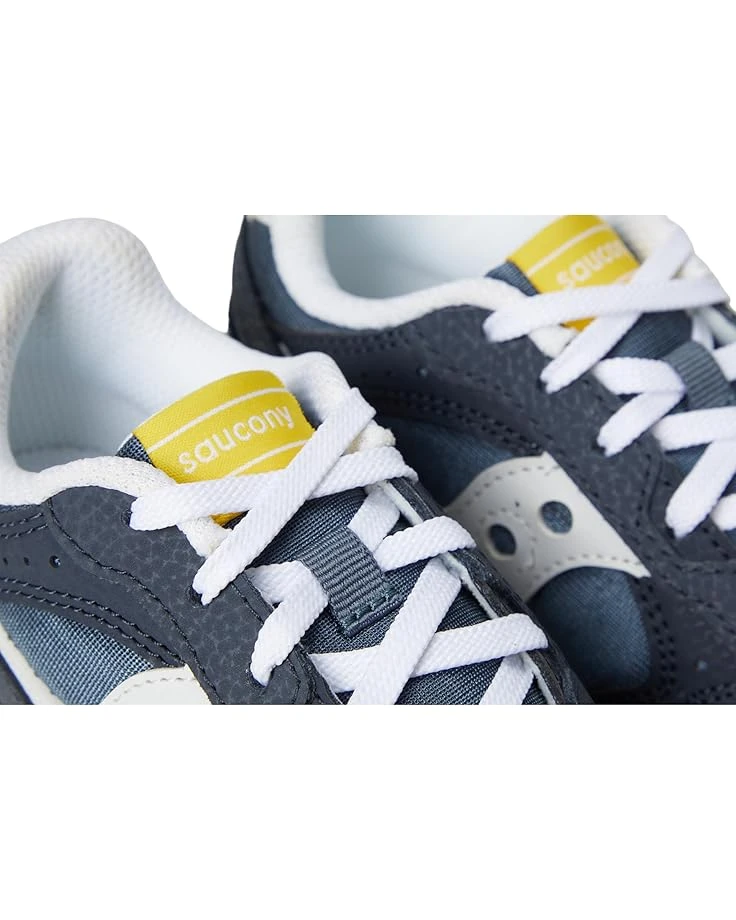 - A new icon, designed for the next generation. This all-new, mini-me silhouette embraces the adult’s original sneaker design, yet it’s re-engineered specifically for kids’ feet. Featuring traditional laces for a secure fit and durable, long-lasting traction, step into the future choosing the Saucony® Kids Eclipse KDZ sneaker. Crafted from durable leather and breathable mesh upper, recycled PET lining, recycled poly sock construction, and padded insole.