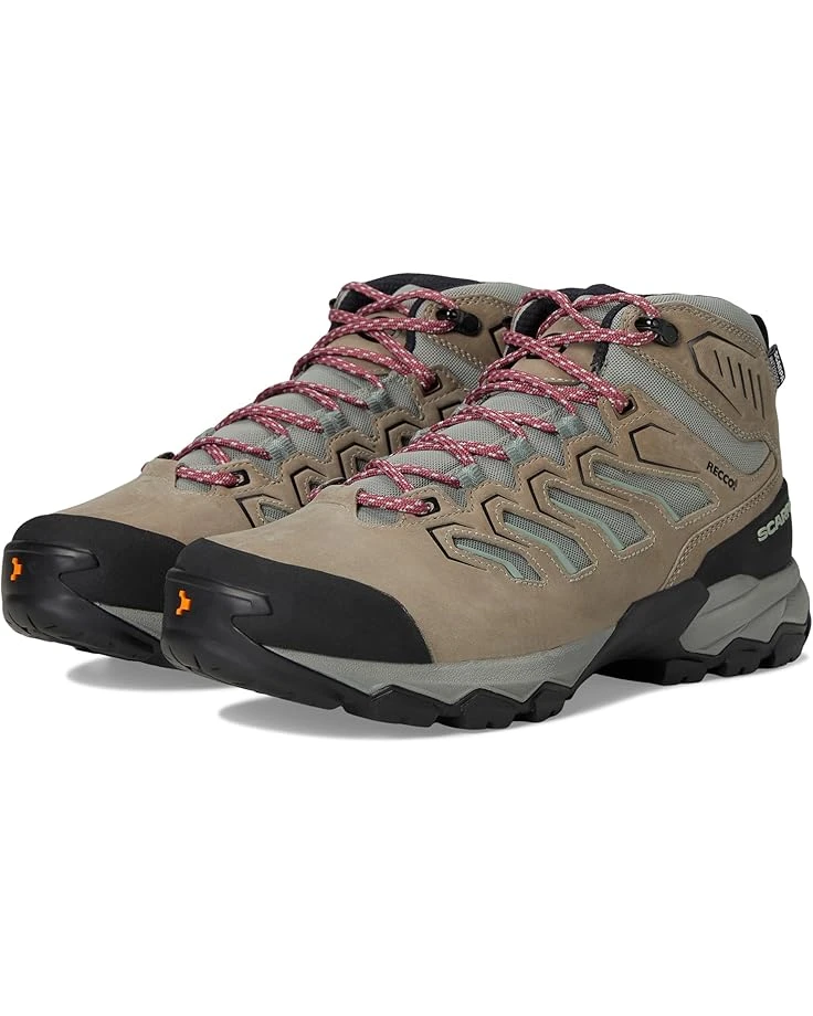 - Go from trail to trek wearing the Scarpa® Moraine Mid WP hiking shoes. Made with premium oiled nubuck leather upper, the shoes have special tanning process bond to the fibers for water repellency. TPU injected heel counter with external molded heel provides rearfoot stability. RECCO reflector makes the wearer searchable for added peace of mind. They have PFAS Free waterproof membrane, removable nylon insert footbed, and 2D-EVA midsole. A round toe, lace closure, and breathable construction make the shoes ideal for outdoors.