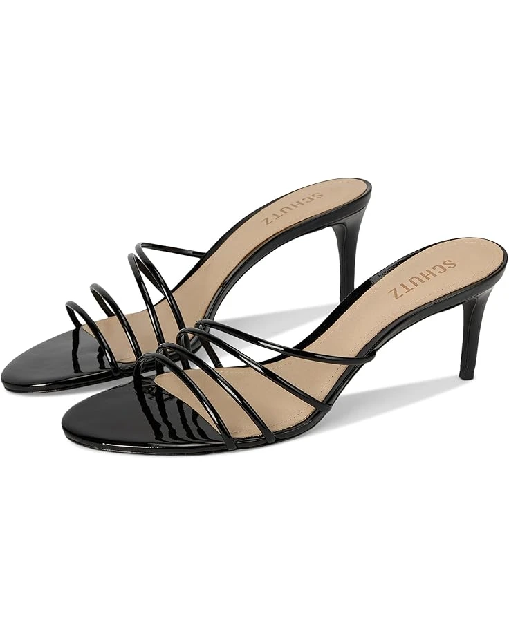 - Multiple front straps define the sleek look of Schutz® Inez Mule. This slip-on footwear is designed with metallic leather upper and lining for a stylish feel.