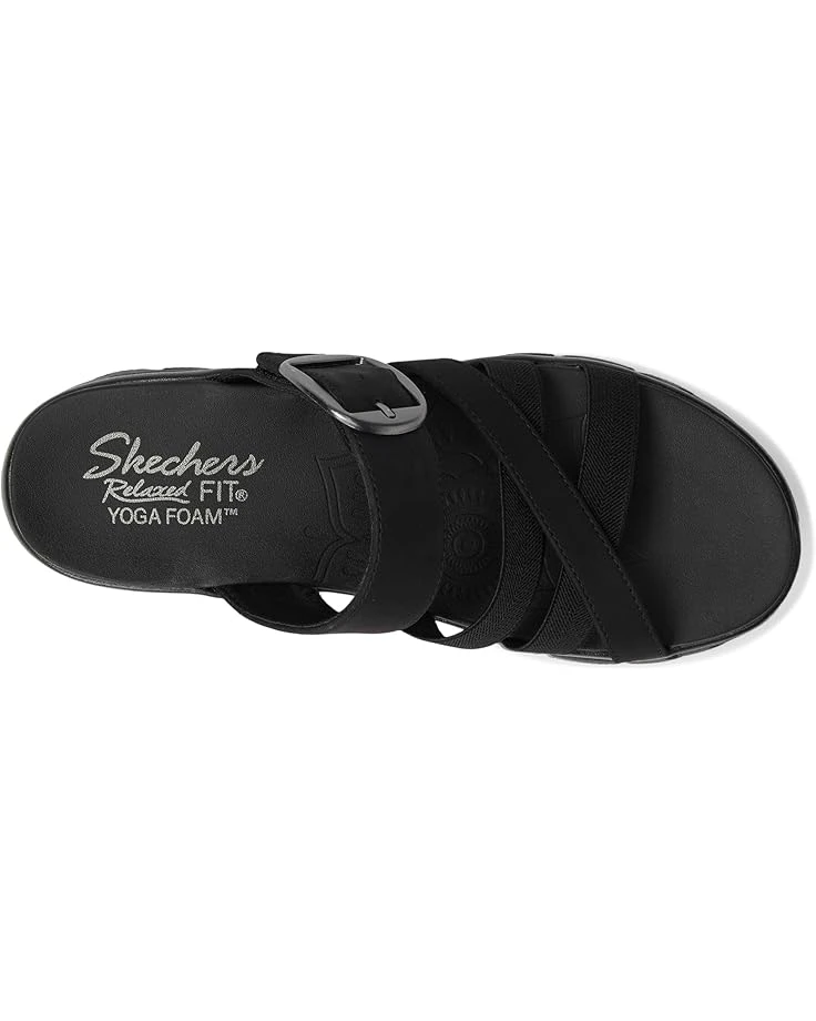 - Head on for explorations in boundless comfort wearing the water-resistant SKECHERS® Easy Going – Perfect Company Sandals. Crafted with vegan materials, the slip-on slides are designed with a double-band knit leather upper, leather lining, and a Yoga Foam® cushioned comfort footbed. The adjustable buckle closure ensures a custom fit.