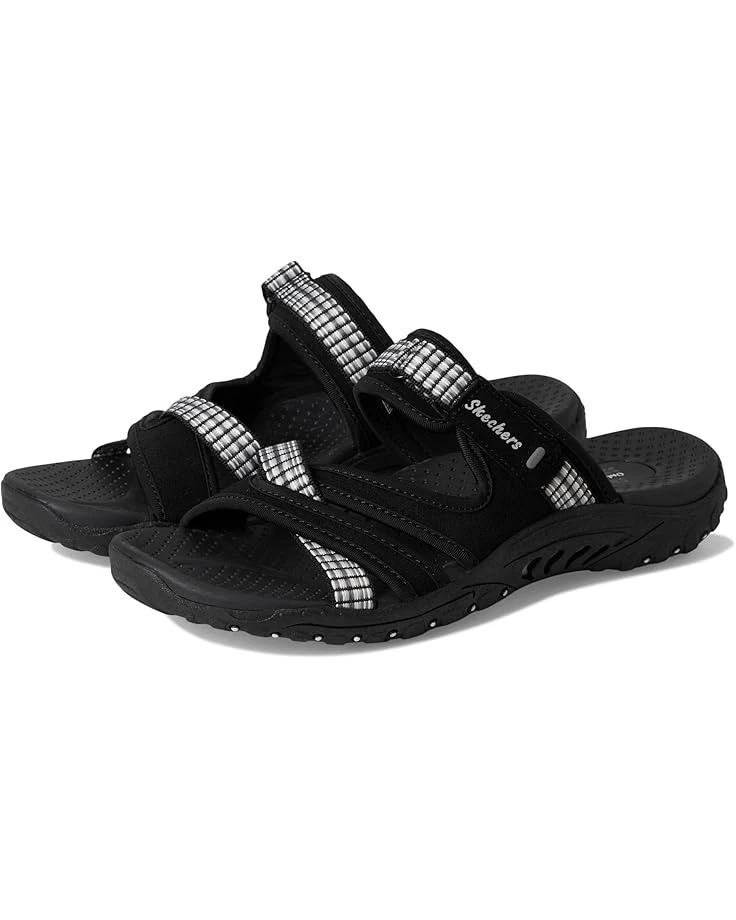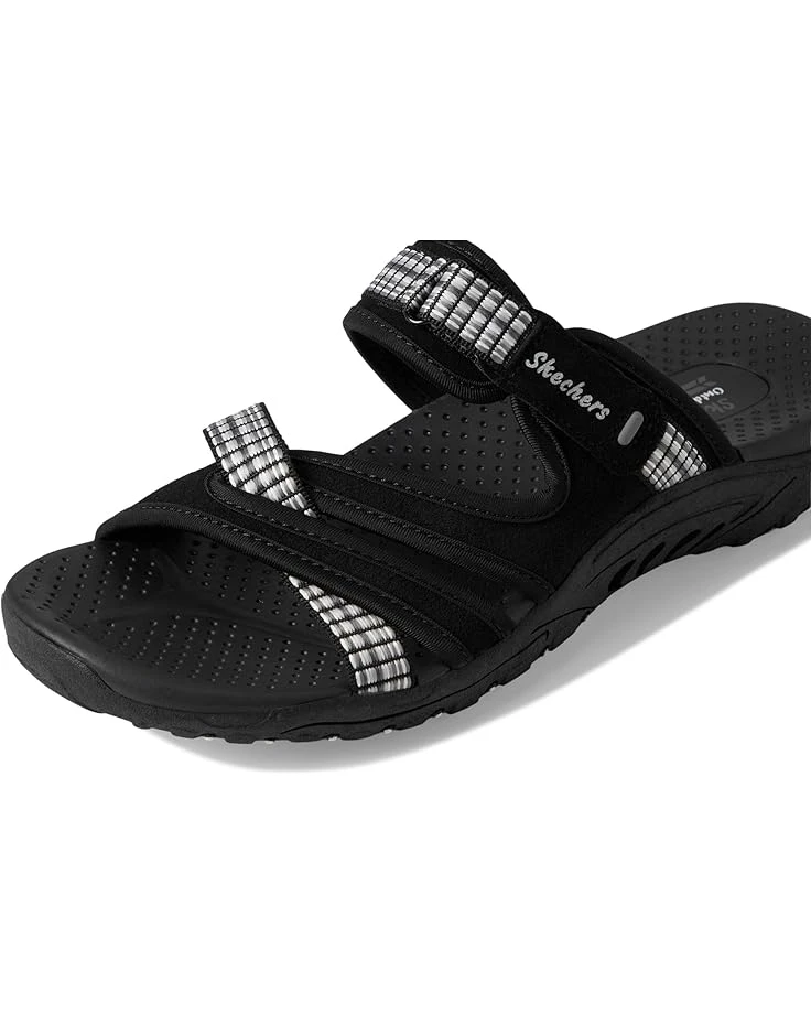- Take every step forward with improved comfort and functionality wearing SKECHERS® Reggae – Color-Full Sandals. The slip-on style strappy sandal features a soft suede and webbing fabric upper with ombre fade, an instep hook-and-loop closure, leather lining, ethylene-vinyl acetate insole, and a lightweight & flexible supportive Reggae midsole.