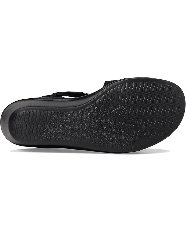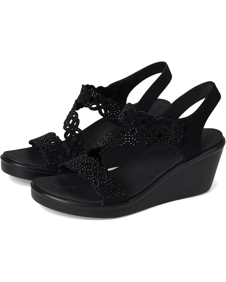 - Fashion and function combine with comfort in the Skechers® Rumble On – Sassier Dayz sandal. This fabulous sling-back wedge sandal features a rhinestone embellished scalloped synthetic strap and cushioned Luxe Foam footbed. It comes with open round toe, ankle strap, slip-on style, and brand detailing on the footbed.