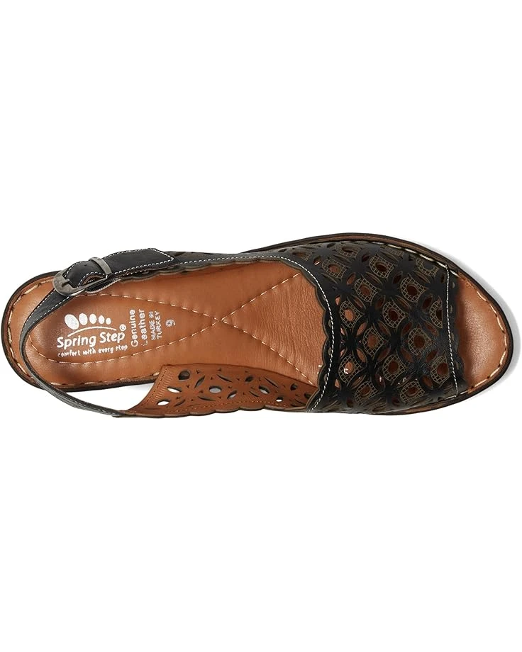 - Head out for a fun and casual outing wearing the Spring Step® Belizana. Crafted from leather upper, lining, and insole, this pair of sandals features open round toe, tonal stitching, adjustable buckle strap, wedge heel, and brand detailing on the footbed.
