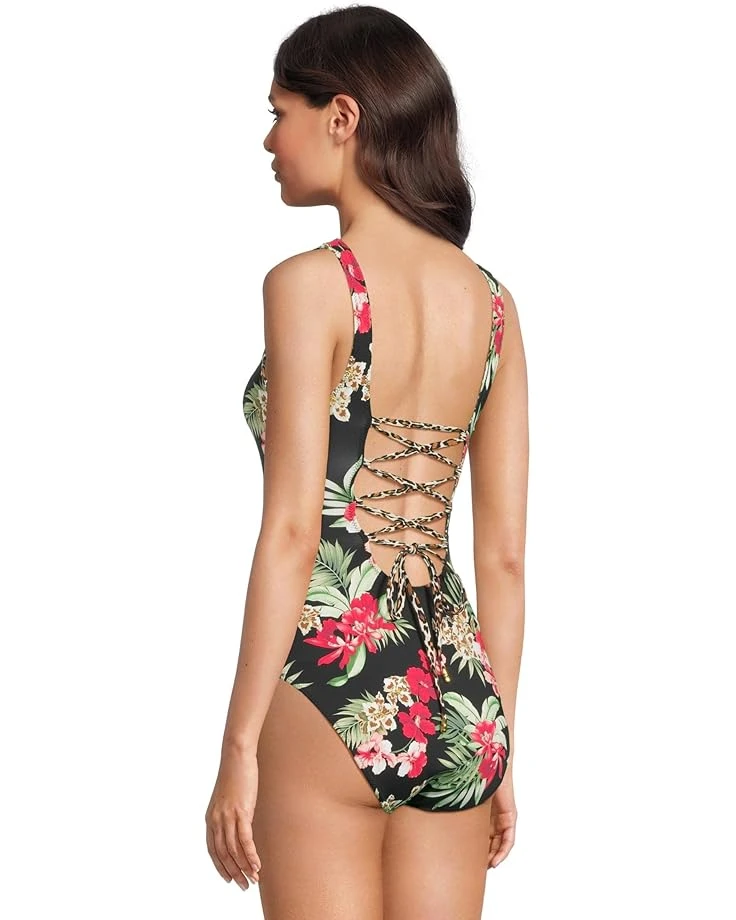 - Perfect for those who love to switch up their look, the Tommy Bahama® Lily Cat Rev Tank One-Piece has a reversible design offering two stunning styles in one. It features an adjustable lace back, ensuring a customized fit. The half-moon cups offer gentle support, while the gold bamboo cord ends add a touch of elegance.