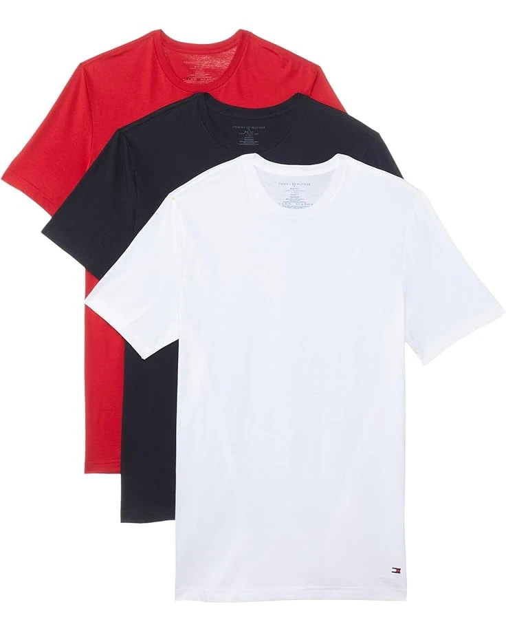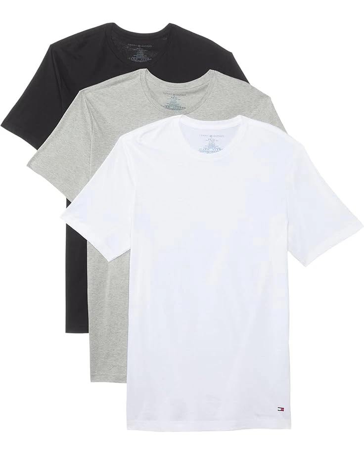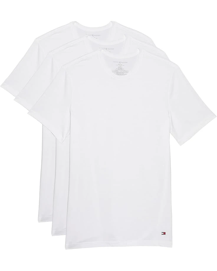 - Give this Tommy Hilfiger® Cotton Classic 3-Pack Crewneck Undershirts to someone on their anniversary or birthday. It has classic fit, crew neck, and short sleeves. It provides an ease around the chest and shoulders, fitted through the body. This Tommy Hilfiger essential tee is designed with core flag logo embroidered on the bottom corner.
