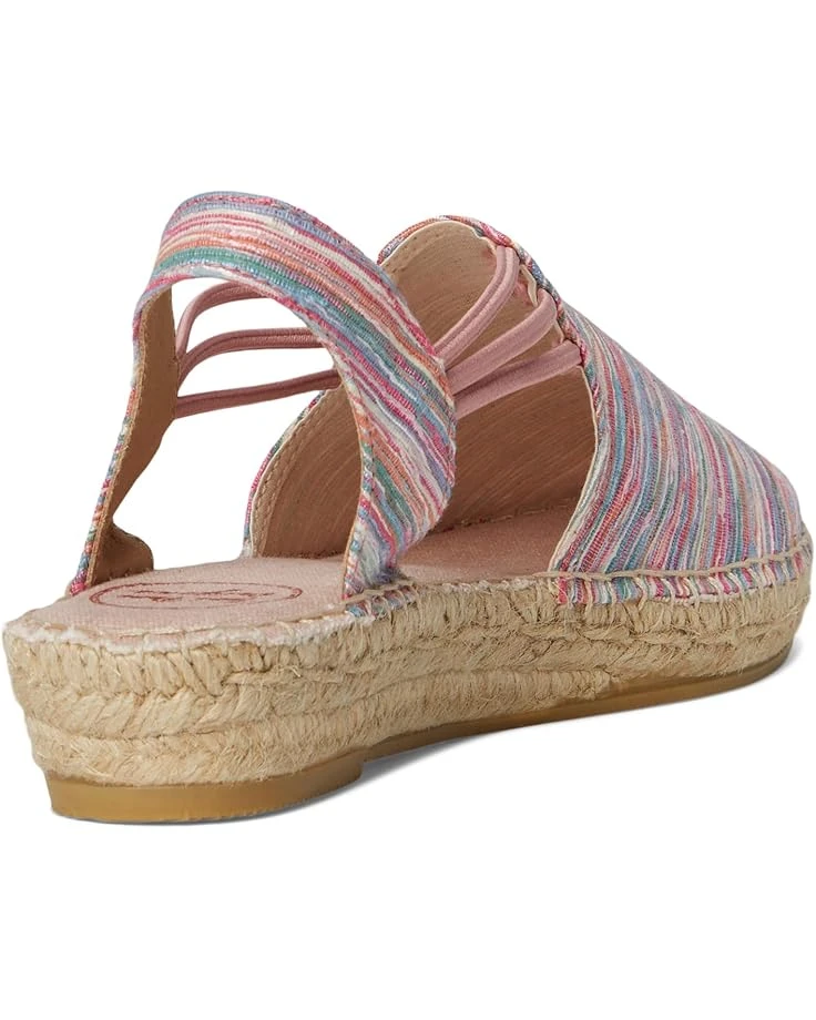 - The Toni Pons® Noa-RG women’s espadrille with elasticated straps is made from fabric with striped bands. The jute wedge has a little height. The base of the sole is made of non-slip rubber. The inner sole is lined with fabric. The union of the fabric and the sole is hand-stitched with cotton thread. Featuring round toe, and flat heel.
