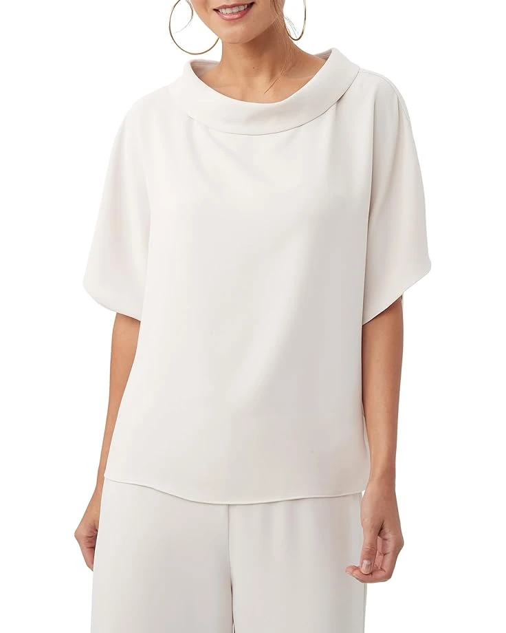 - The Trina Turk™ Honeysuckle Top: Confidence blooms with every wear. This relaxed-fit piece features a chic folded boatneck and flowing dolman sleeves, offering both comfort and contemporary flair. Designed for a laid-back yet polished look, the pull-on style ensures a hassle-free experience. Perfect for both casual outings and stylish layering, this top’s easy fit and unique silhouette bring the best of fashion and function together.