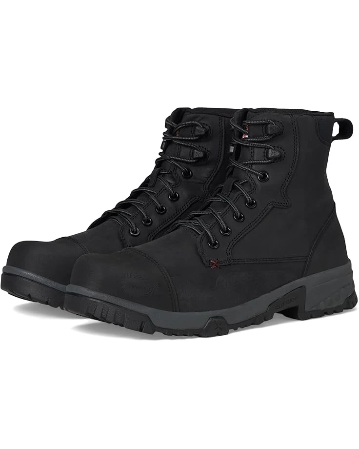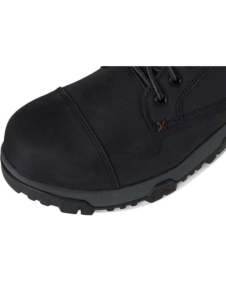 - Designed for work, the Twisted X® Work 6″ Work Boots. Crafted from leather, rubber, and fabric upper, textile lining, and insole, this pair of shoes features round toe, nylon lace detailing, and triple stitched in key wear areas for extra durability. CellStretch® technology utilizes cells in the forefoot and heel to provide superior cushioning and comfort. Nano toe (ASTM F2413-18 M/I/C EH) with rubber toe cap. Nano toe with XRD Met Guard technology (ASTM F2413-18 M/I/C Mt EH). XRD Met Guard provides impact protection for the metatarsal area of the foot.