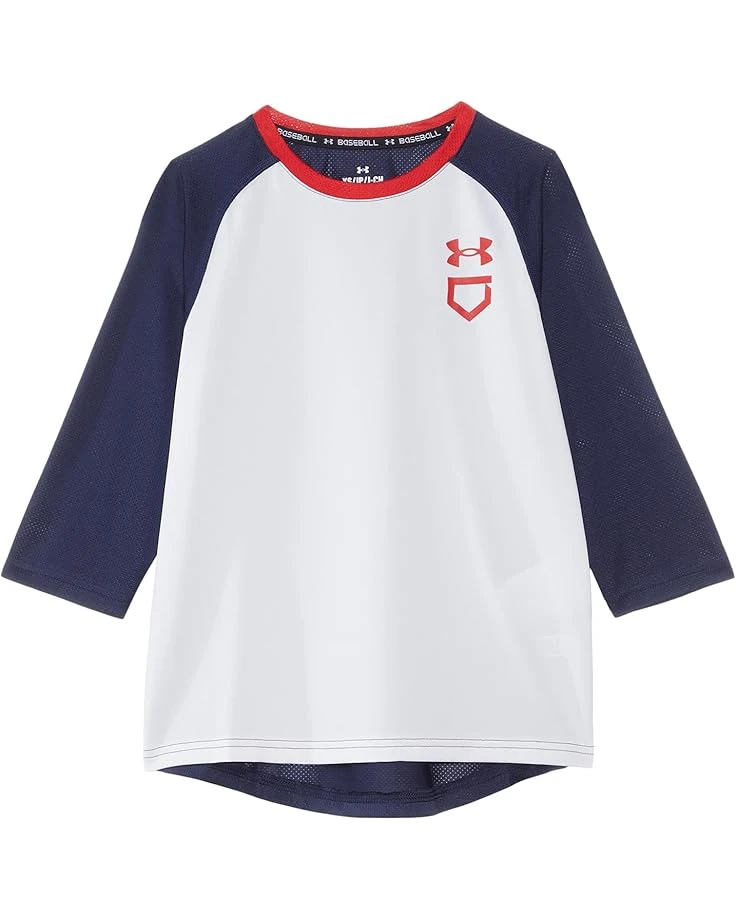 - Be active whether you are on the ground or casually strolling around wearing Under Armour® Kids Utility 3/4 Performance Shirt. Specially crafted for comfort, the pull-on T-shirt features a crew neck, three-fourth sleeves, a stylish color-block design, and brand logo detail at the chest.