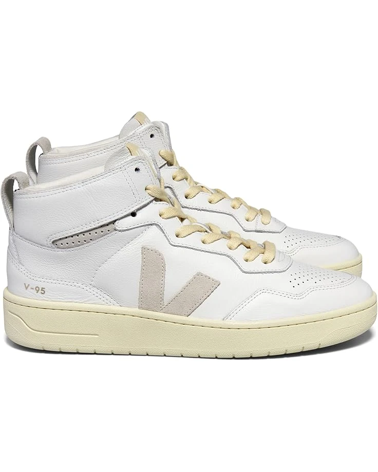 - Perfect to pair with your casual outfits and styles, the VEJAâ„¢ V-95 shoes are a high-top version of the V-90 sneakers. The leather upper of these sneakers features strap details and a lace-up closure for a secure fit. These lace-up sneakers are made of a rubber insole and polyester lining. Walk with style wearing these leather sneakers.