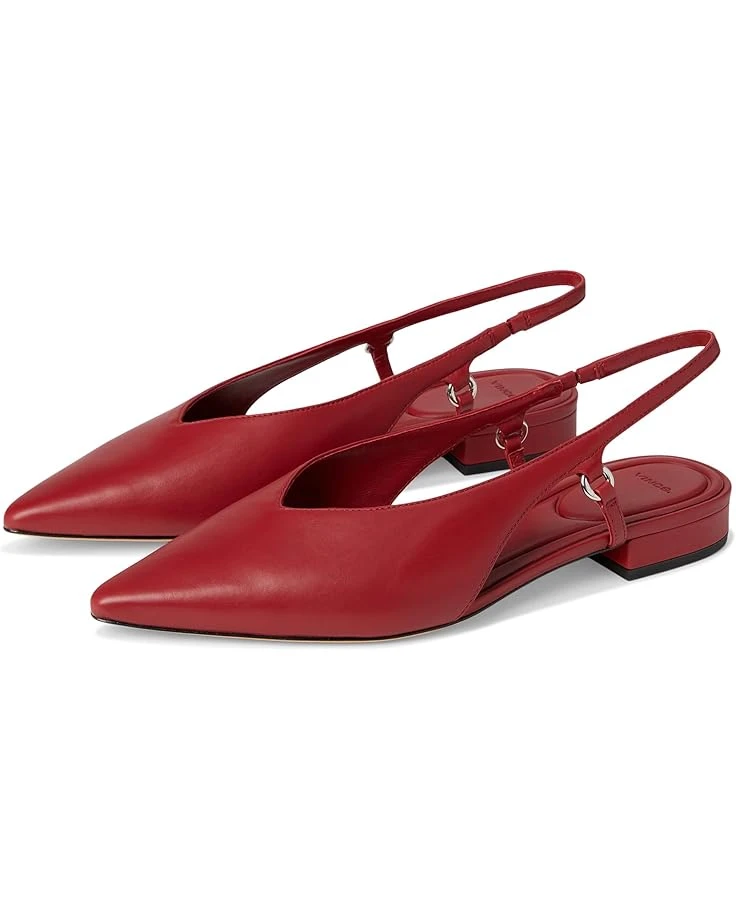 - Hold everything and stay stylish wearing the Vince® Ines. Crafted from smooth leather, the sleek Ines slingback lends a contemporary take on the classic pointed-toe flat with a modern V-shaped topline, low heel, and metal ring details. A cushioned leather footbed adds covert comfort.
