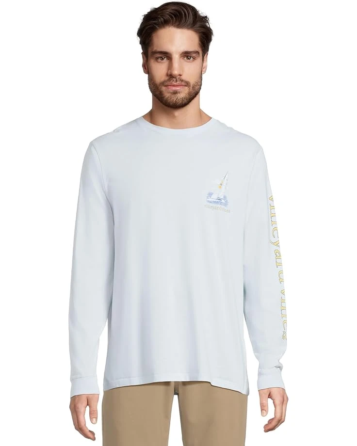 - Make your everyday outings more comfortable and chic wearing Vineyard Vines® Painted Sailboat Race Long Sleeve Tee. The pull-on style, soft-washed tee features a crew neck, long sleeves with Vineyard Vines® branding on the side, ribbed cuffs, a cool graphic print on the chest & back, and a straight hem.